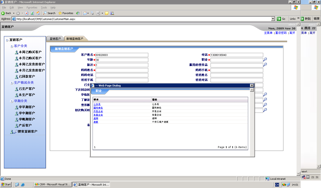7. 报表管理系统: 联系人报表 客户报表 销售报表 销售统计报表 自定义报表